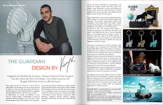 C'est ainsi, qu'il fit naître les iconiques sculptures « The Guardian », en hommage à ses deux English Bull terrier disparus ; Sculptures qui, aujourd'hui, rencontrent un succès International.